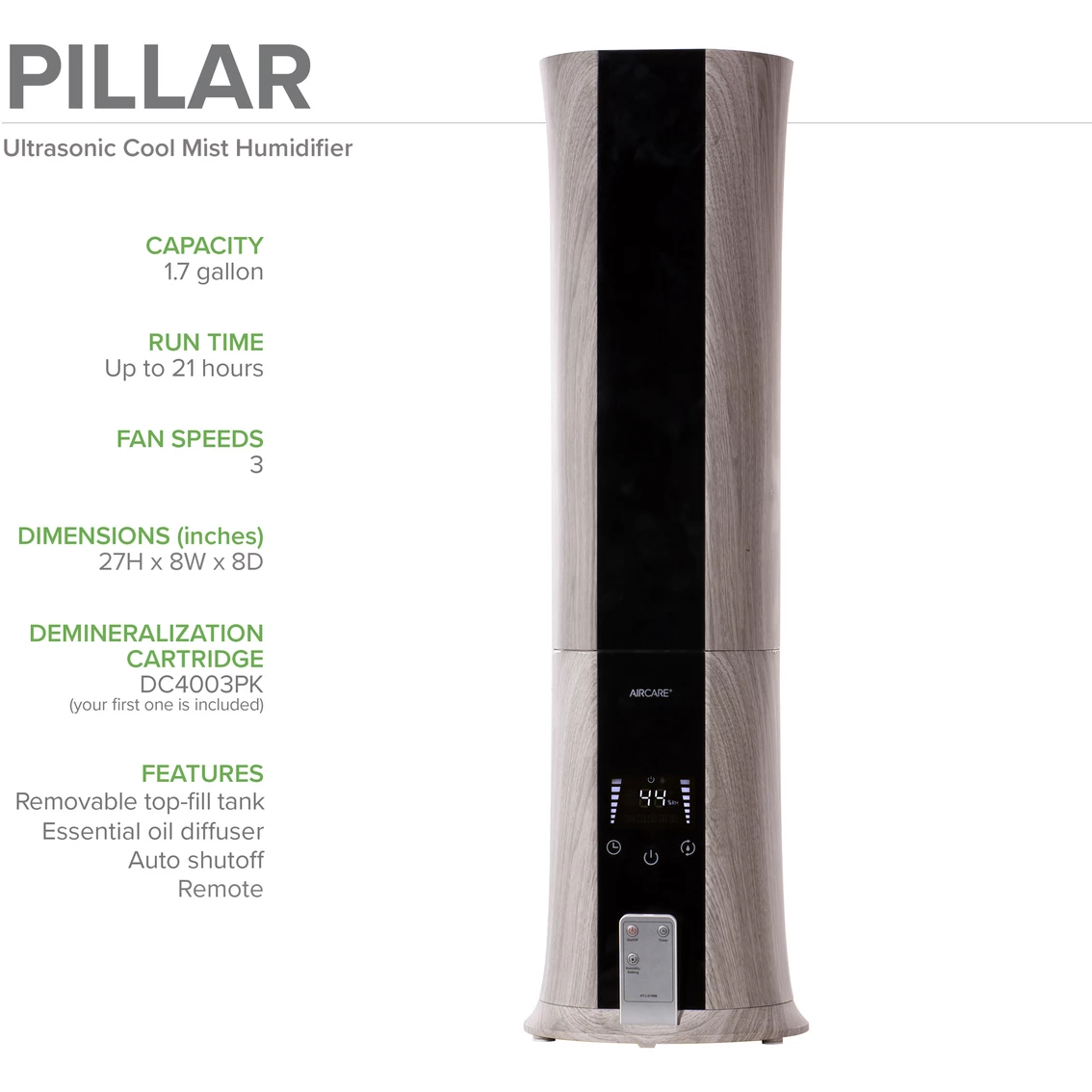 This Aircare Pillar Cool Mist Ultrasonic Humidifier is for 750 sq. ft. in a Driftwood finish and features an Essential Oil Diffuser and LED Nightlight. Aircare humidifiers are made to look great in any room, in any home. But they’re more than just good looks. Aircare humidifiers really care for your air. Whether you need a cool mist evaporative humidifier for your whole house, a warm mist ultrasonic humidifier for your baby’s nursery, or a steam humidifier to help soothe flu symptoms, Aircare has a humidifier with the right mist to keep you comfortable. Model: PU320DDWD-EC.