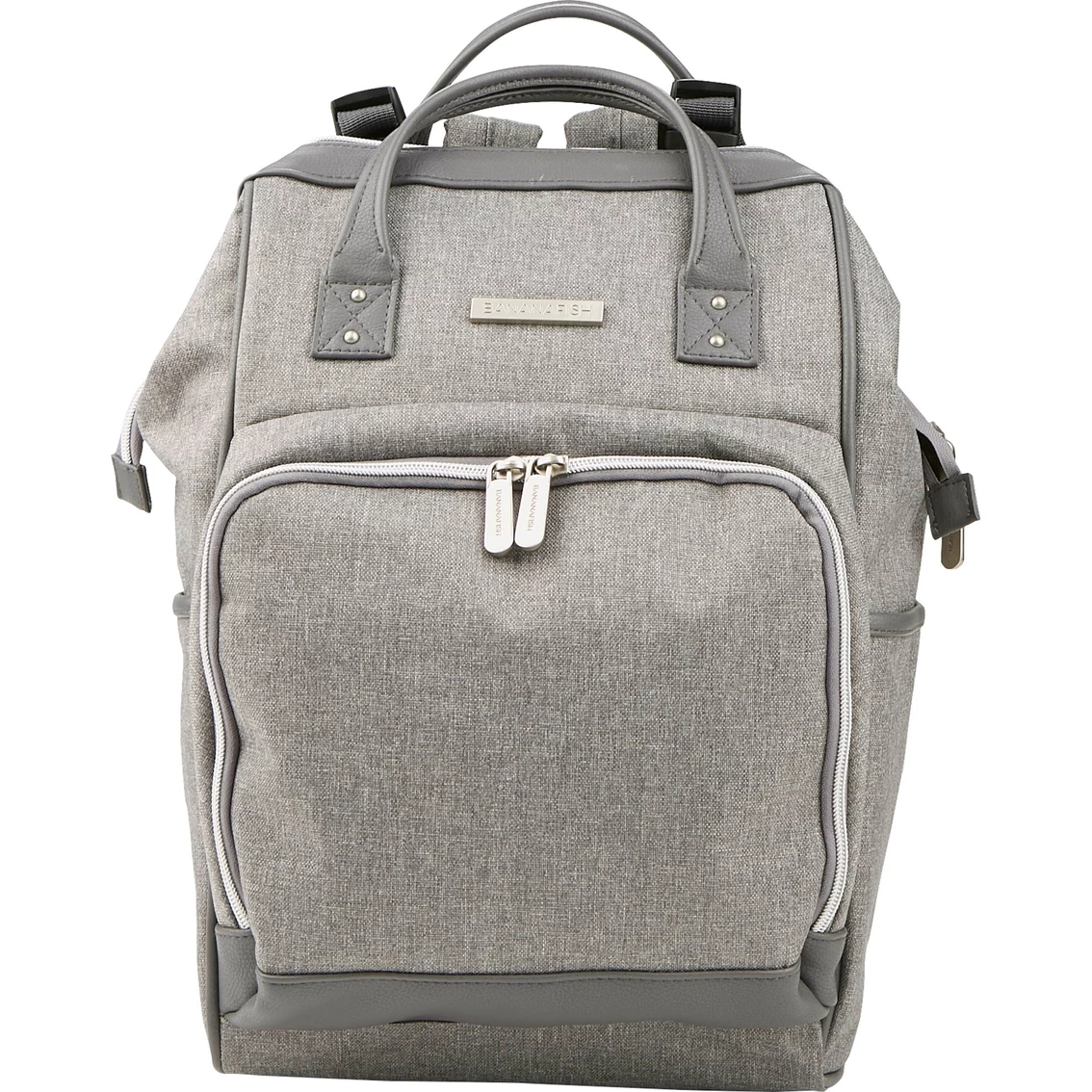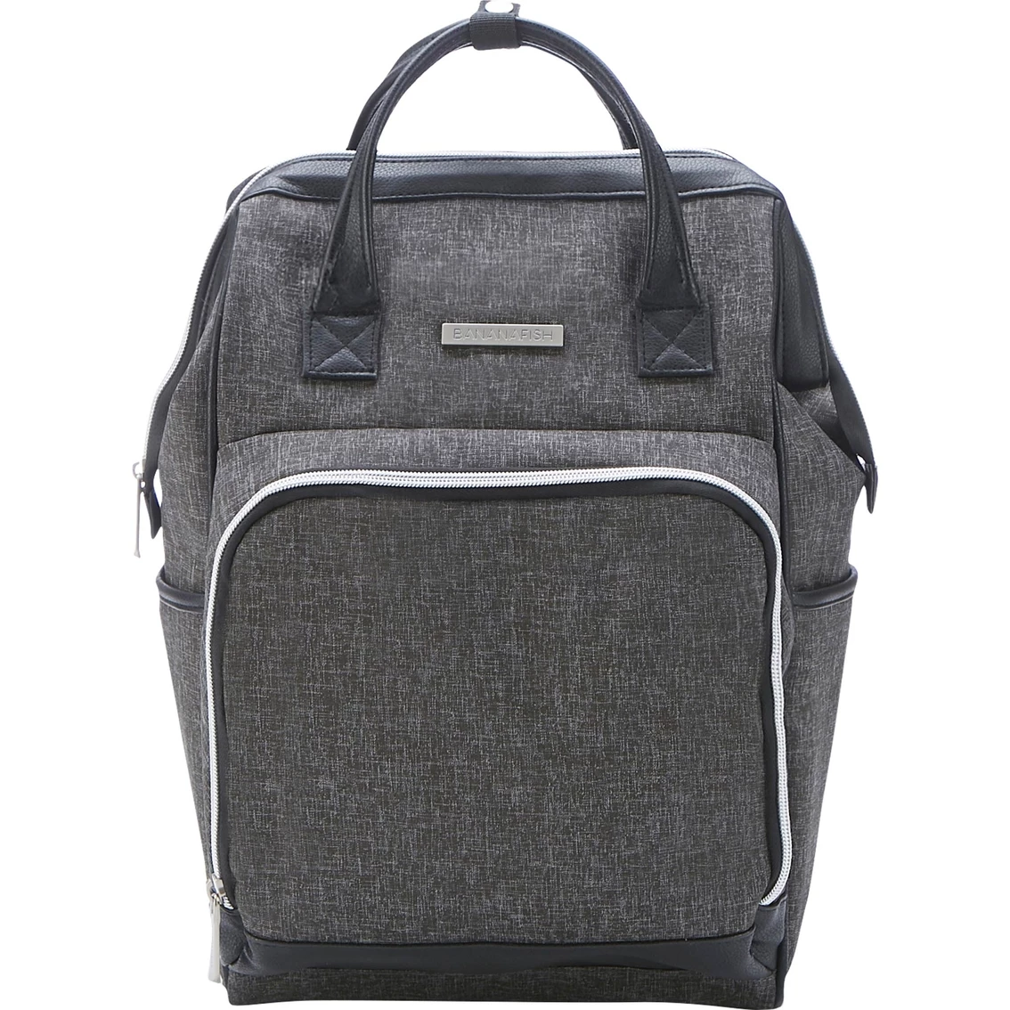 The Bananafish Melanie Mini Diaper Backpack from Baby Boom is ideal for a playdate or an all-day adventure. No matter where you go, you’ll have all your baby care essentials stored in the fashionable bag with spacious interior and 10 elastic and zippered pockets that keep you organized even on the most hectic day. This bag can be worn three ways for your comfort and convenience. You can wear this bag on your back with adjustable padded shoulder straps, carry it with your hand by the soft top carry handles or attach it to a stroller with stroller loops. Two interior insulated bottle pockets keep bottles cool. The side zippered back panel keeps Mom’s essentials safe and secure. As an extra bonus, the bag comes with its own padded changing pad that makes changes on the go a breeze. Model: BF21021.