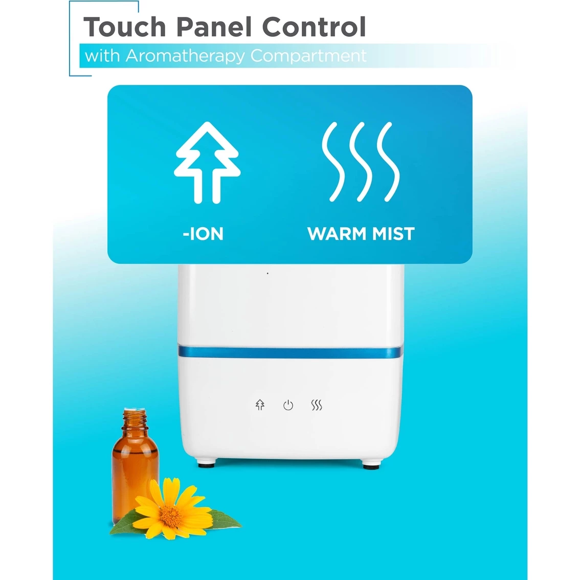 – This diffuser humidifier also features a touch panel control for ease of use and a Negative Ion function that effectively fights pollutants and improves air humidification
