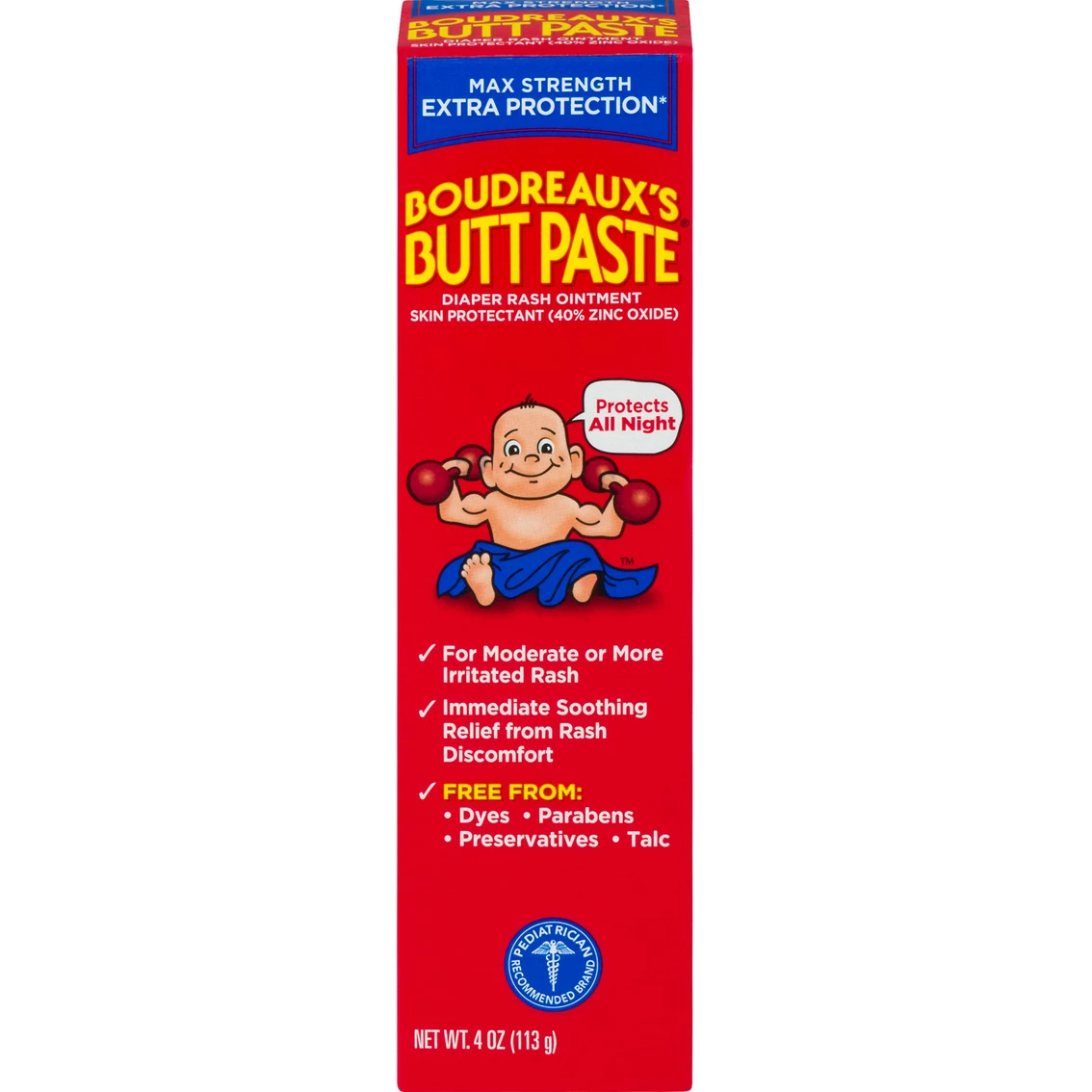 When used on a daily basis, it is also a great way to help prevent diaper rash. Boudreaux’s Butt Paste Maximum Strength Diaper Rash Ointment is a clinically-tested formula that helps provide fast relief from diaper rash discomfort and instantly protects irritated skin with the first use.