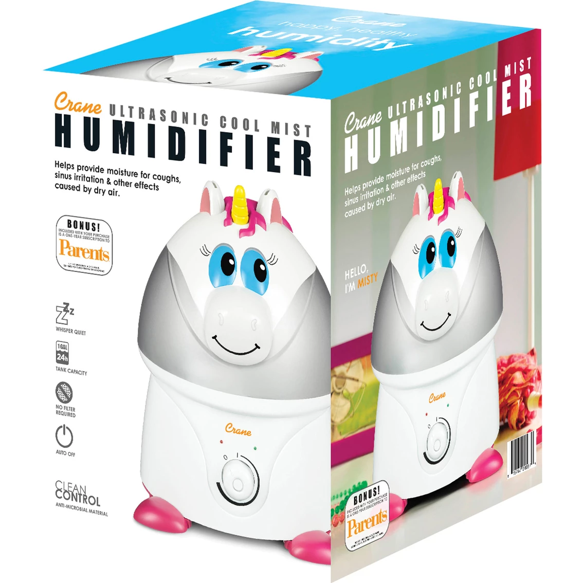 Get relief from cold and flu symptoms and bring wellness to your entire family with a Crane Adorable humidifier. Featuring an award winning, child friendly animal designs and top rated performance. Crane’s 1 gallon Adorable ultrasonic cool mist humidifiers provide up to 500 sq. ft. of coverage and 24 hours of soothing moisture to help relieve the effects of dryness and congestion, helping you and your family to breathe easy and sleep through the night peacefully. Model: EE-8249.