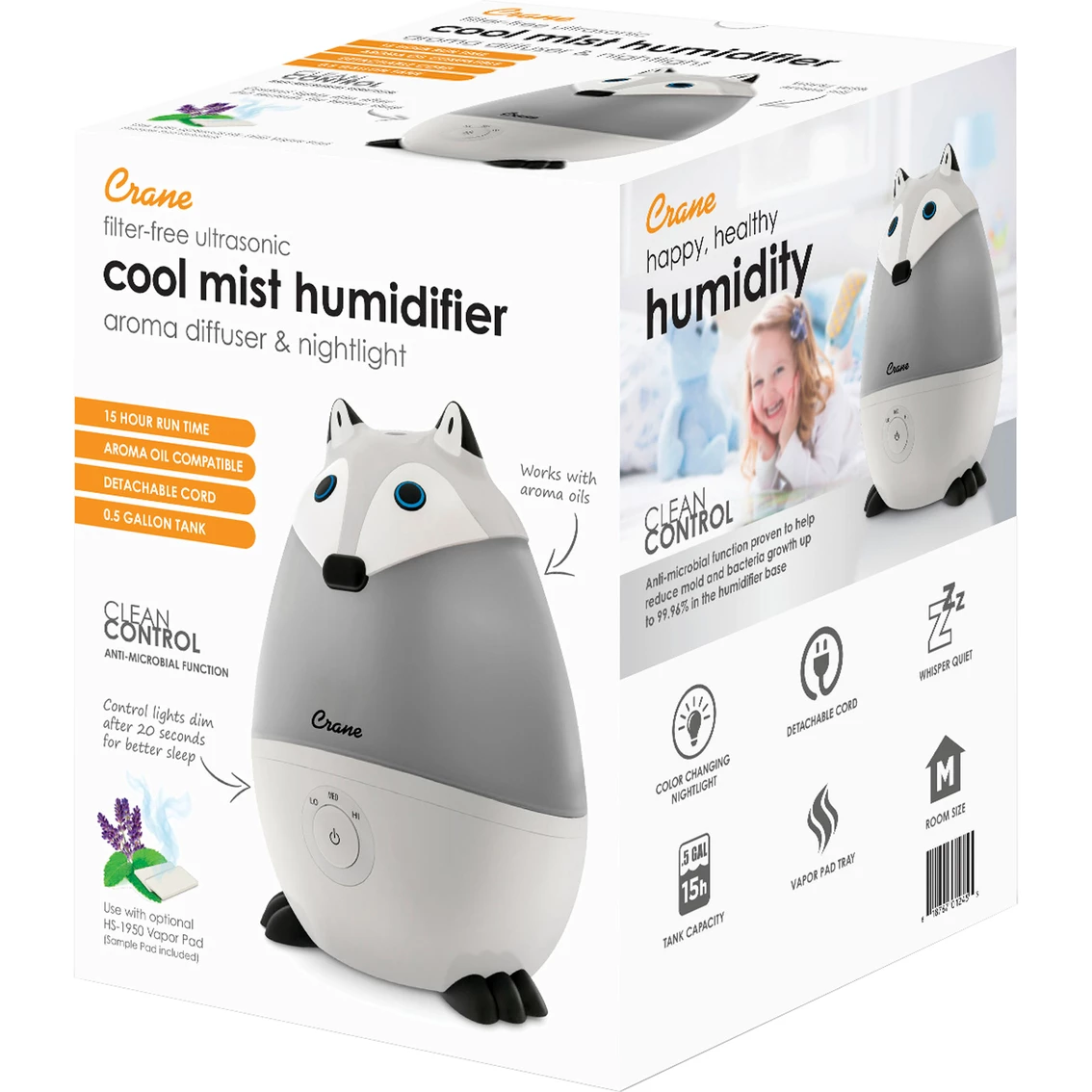Get relief from cold and flu symptoms and bring wellness to your entire family in style with a Crane Mini Adorable Humidifier. Based off of the award-winning design of the Crane Adorables and its top rated performance, Crane’s 0.5 Gal. Mini Adorable ultrasonic cool mist humidifiers provide up to 250 sq. ft. of coverage and 15 hours of soothing moisture to help relieve the effects of dryness and congestion. Use with Crane’s vapor pads (HS-1950 & HS-1950L) for an elevated experience to help you and your family breathe easy and sleep through the night peacefully.