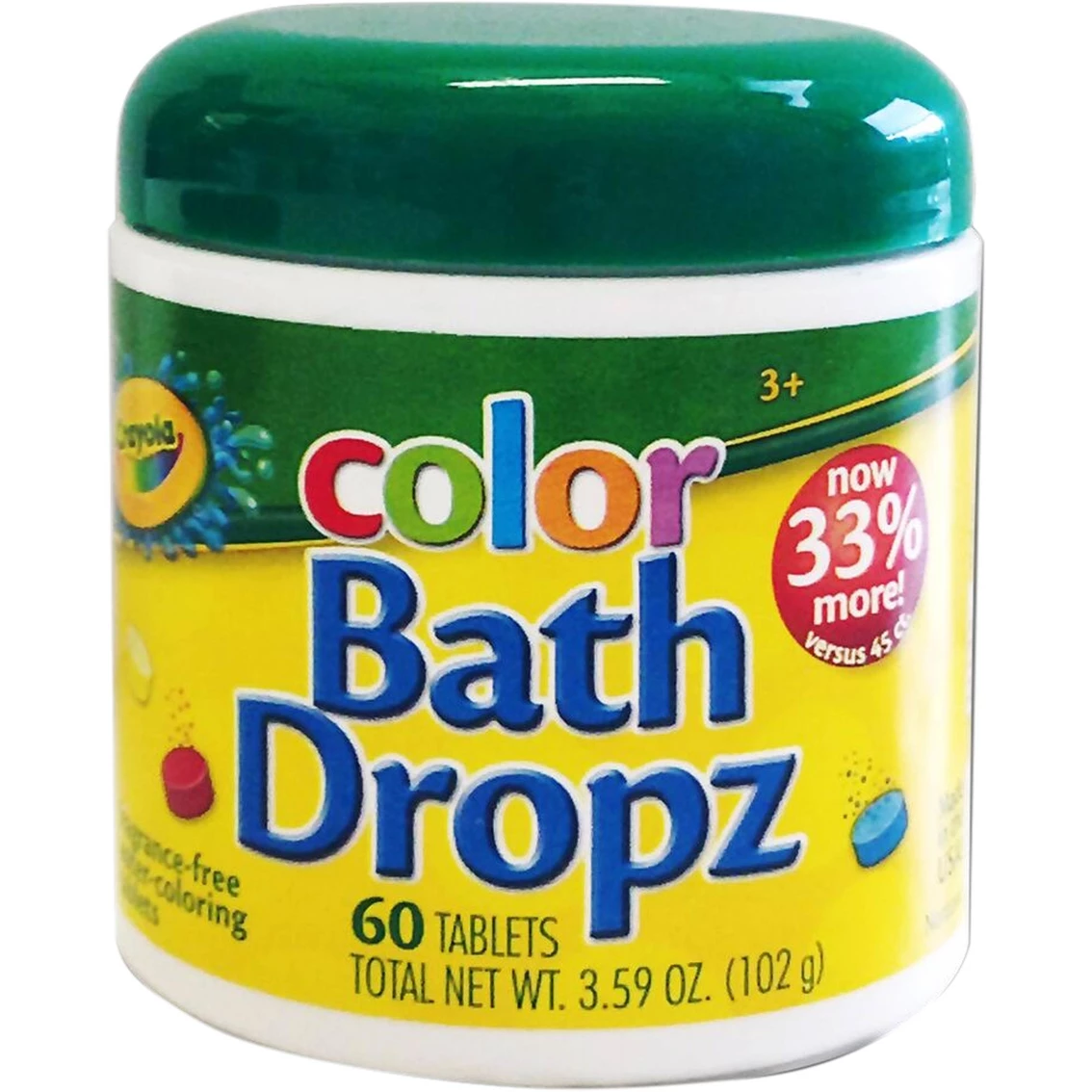 Crayola Bath Dropz – Water Coloring Tablets. Take up to 60 colorful baths. These water-coloring tablets are fragrance-free. Blue, Yellow & Red Dropz. Nontoxic.