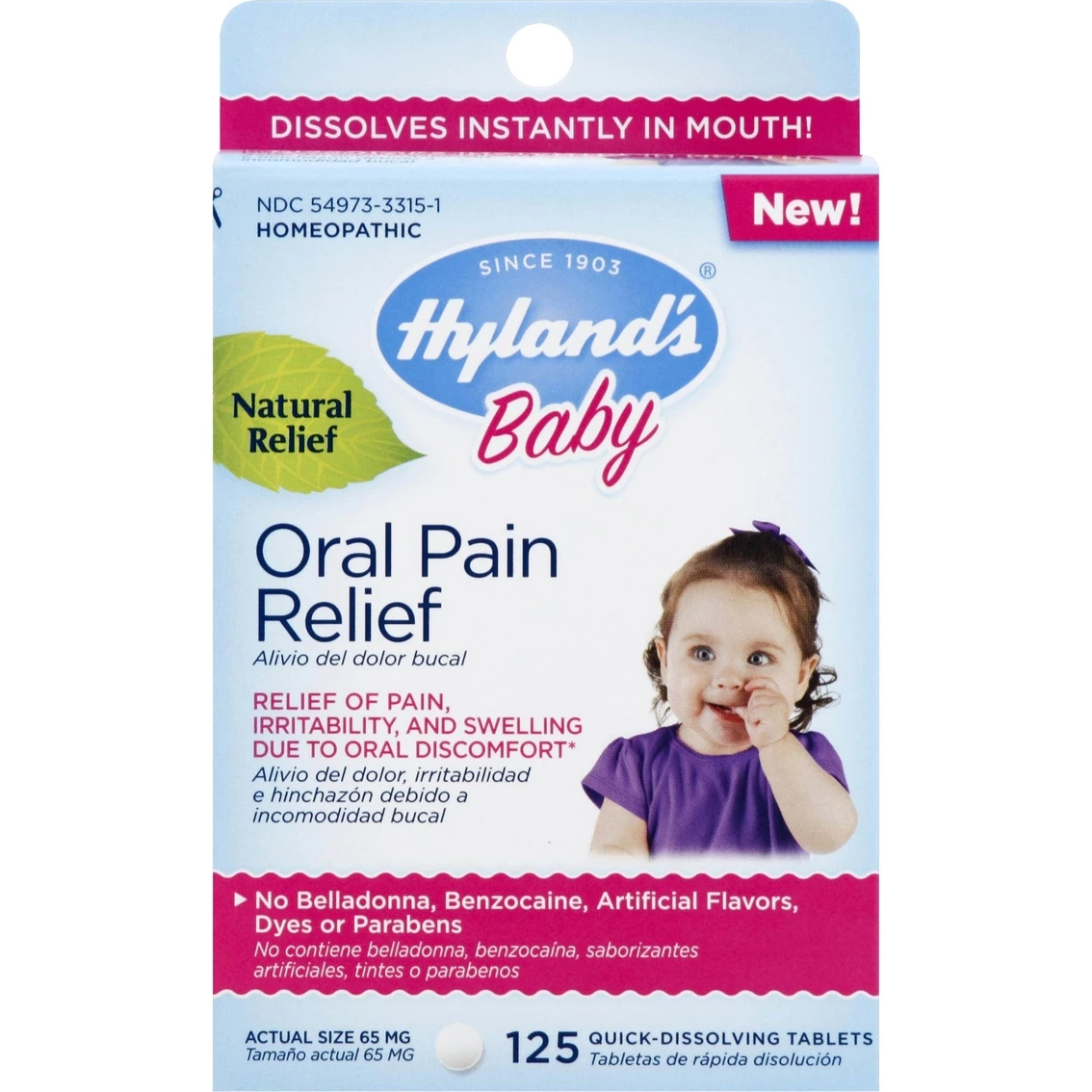 Hyland’s Baby Oral Pain Relief Tablets naturally relieves the symptoms of oral pain and discomfort including sore, sensitive or swelling gums and irritability. The tablets are easy to use and administer. They dissolve quickly to melt in your baby’s mouth instantly.