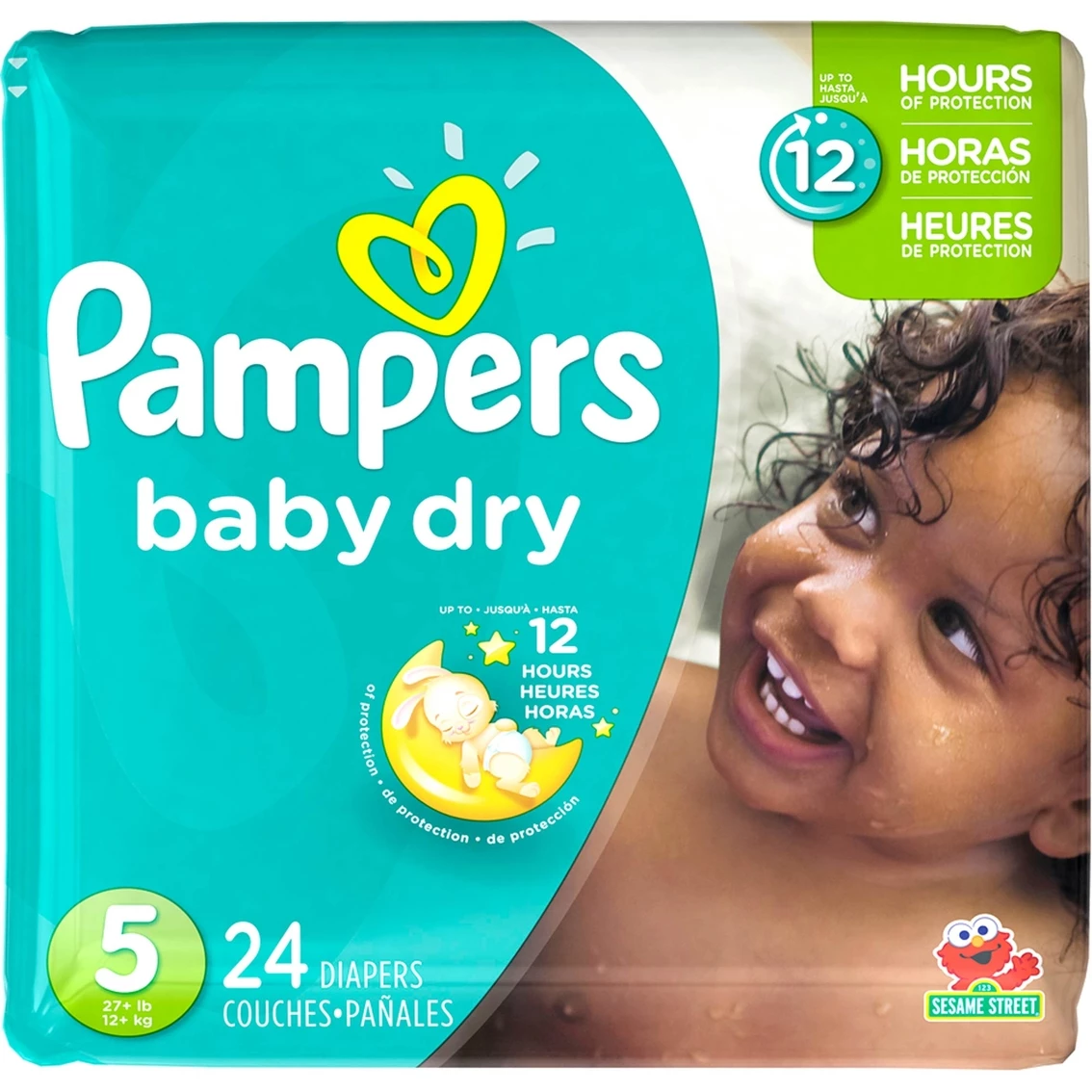 Pampers Baby Dry Diapers have 3 layers of absorbency so your baby can sleep soundly all night. Your baby can get up to 12 hours of overnight dryness with Pampers Baby-Dry diapers. These diapers are soft inside and out and flex for a snug and comfortable fit. Size 5 fits most babies between greater than 27 lb.