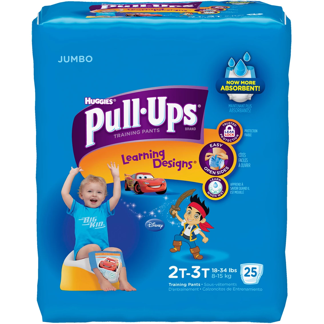 Pull-Ups 2T-3T Training Pants with Learning Designs for Boys feature unique patterns that fade when wet to help your toddler learn to stay dry. Pull-Ups potty training pants with stretchy sides allow kids to pull them on and off and Disney characters help make training pants seem like Big Kid underwear. The easy-open sides make checking for potty breaks simple. Pull-Ups Training Pants give your child trusted day and night leak protection with added absorbency where he needs it most and easy-open sides for quick changes. Pull-Ups disposable training underwear provide all-around coverage with soft, stretchy sides for a great fit and an underwear-like design that lets your child slide them on and off easily. Start potty training today!