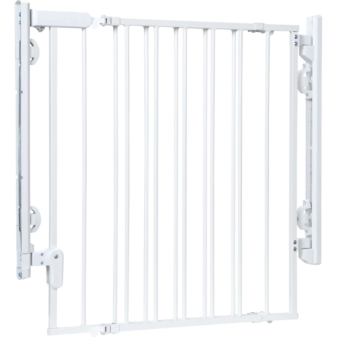 Now that baby is on the move, you can easily keep stairways off limits with the Ready to Install Everywhere Gate from Safety 1st. This hardware mounted security gate with a no trip design is perfect for stairways where you need the extra security, but is also great for anywhere in the home you’d like to have a hardware mounted gate. There’s no measuring, marking or need to level thanks to the innovative packaging. The gate comes out of the box in one piece to ensure your install will be hassle free. While other gates require drilling, multiple parts, and extra steps that lead to frustration; this fully assembled gate installs easily with only a screwdriver in 15 minutes — half the time of a standard gate install. Operating this safety gate is easy, too. The no threshold design means no trip hazard at the top of the stairs. One-hand operation and a swing-open door make it easier to pass through, and the gate closes with just a push, letting you get on your way.