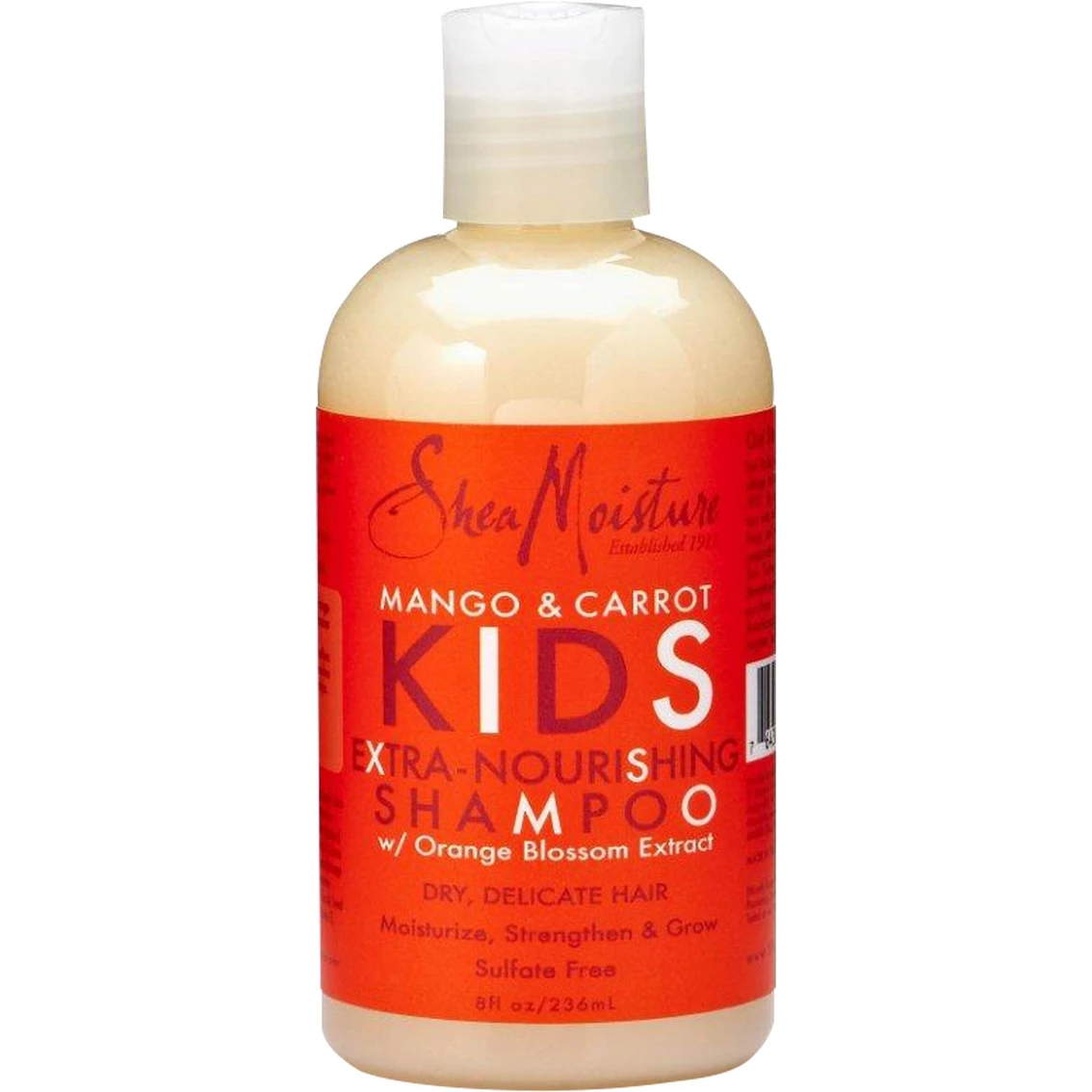 Shea Moisture Mango and Carrot Extra Nourishing Shampoo gently cleanses and detangles the fine and delicate hair of children. Helps nourish and strengthen hair, while protecting against breakage.