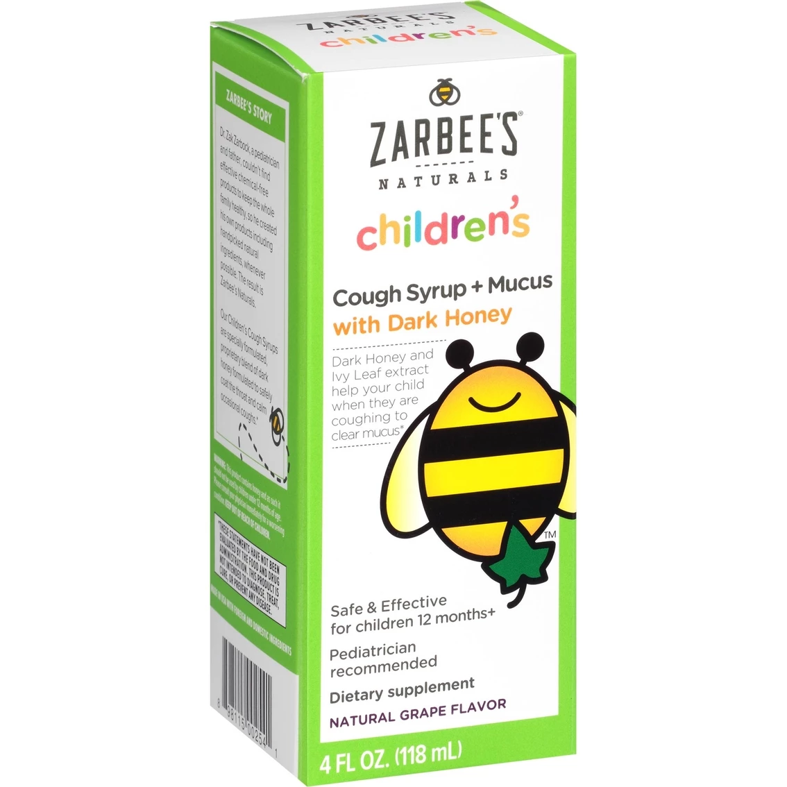 Zarbee’s Children’s Cough and Mucus Syrup soothes coughs, breaks up mucus and supports immune system. Zarbee’s Syrup is made with dark honey and English Ivy leaf extract to help your child when they are coughing to clear mucus. Pediatrician recommended Zarbee’s Syrup is gluten-free and includes Vitamin C and Zinc to support immune systems. It contains no drugs, alcohol, dyes or artificial flavors.